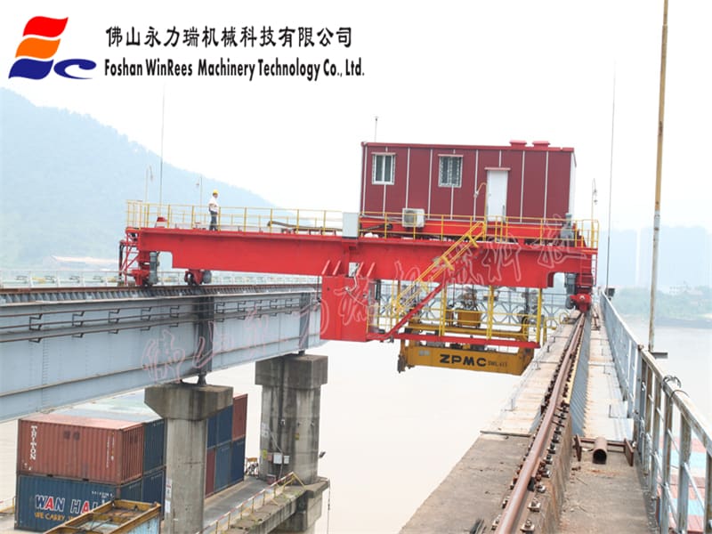 3. 集装箱桥式起重机配以悬臂伸出河道外,设计足够的高度,现实专用集装箱码头、港口等场所装卸集装箱,效率高,设计合理、造价低。适合内河中转码头现低投入高产出的效果,经济效益十分明显。